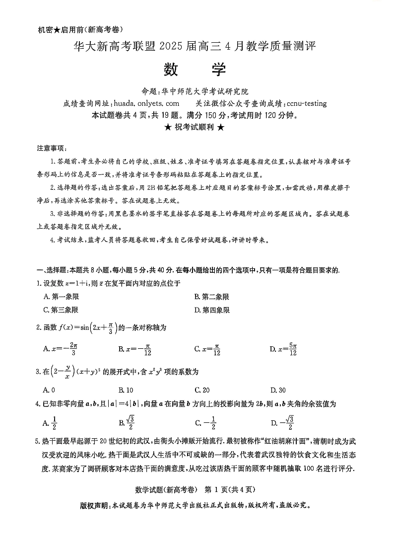 华大新高考联盟2025届高三4月教学质量测评 数学.pdf