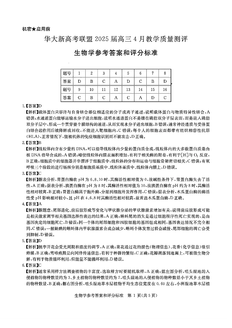 华大新高考联盟2025届高三4月教学质量测评 生物答案.pdf