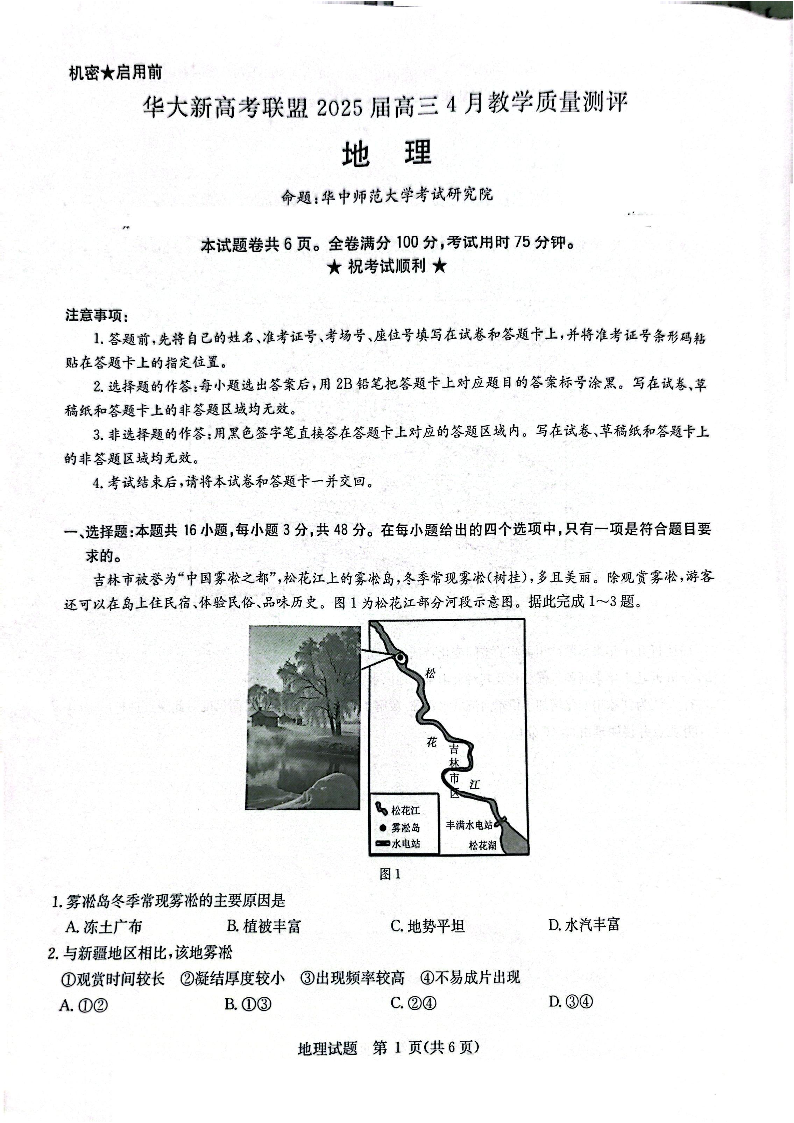 华大新高考联盟2025届高三4月教学质量测评 地理.pdf