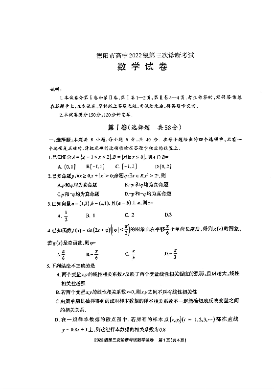 四川省德阳市高中2022级第三次诊断考试 数学.pdf