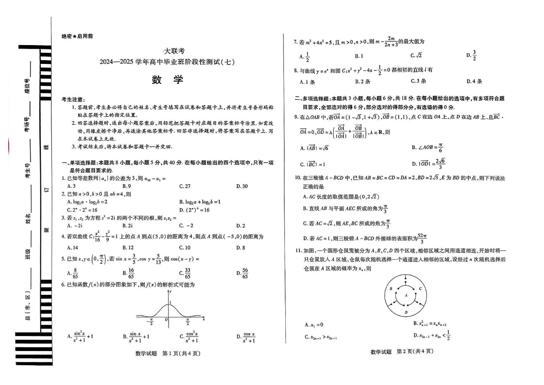 天一大联考2024-2025学年高中毕业班阶段性测试(七)数学试题(含答案).pdf