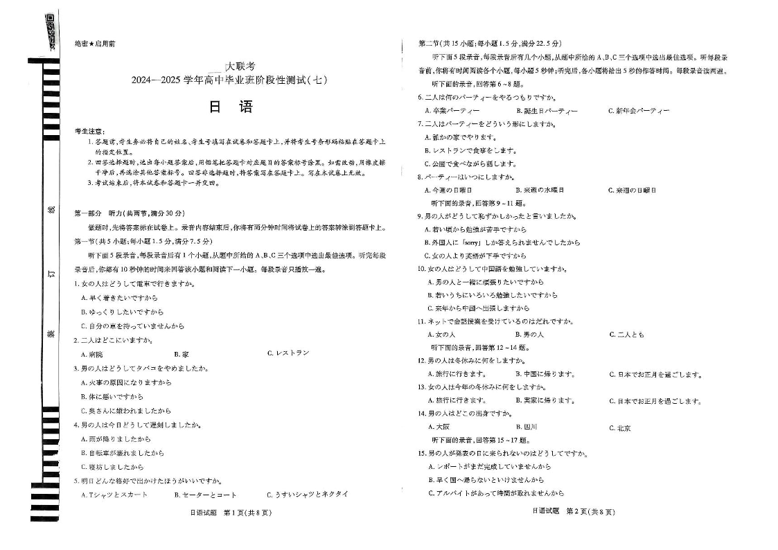 天一大联考2024-2025学年高中毕业班阶段性测试(七)日语试题(含答案).pdf
