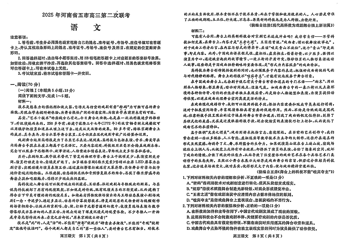 2025年河南省五市高三第二次联考 语文.pdf