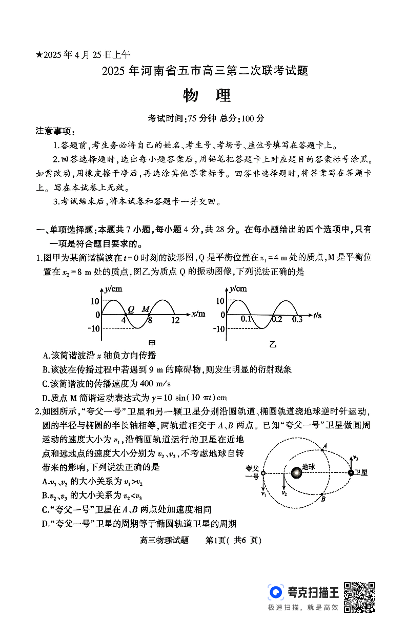 2025年河南省五市高三第二次联考 物理.pdf