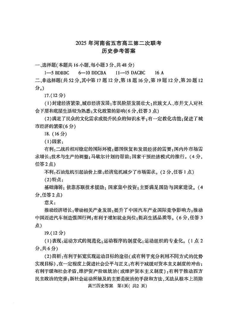 2025年河南省五市高三第二次联考 历史答案.pdf