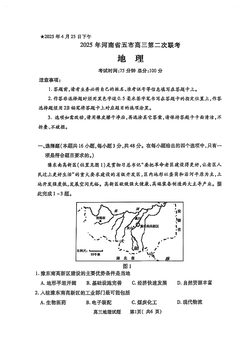 2025年河南省五市高三第二次联考 地理.pdf