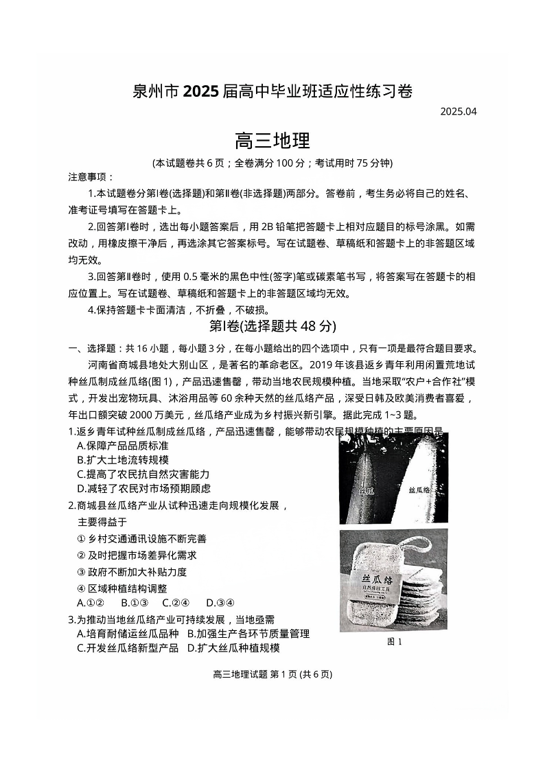 泉州市2025届高中毕业班适应性练习卷 地理.pdf