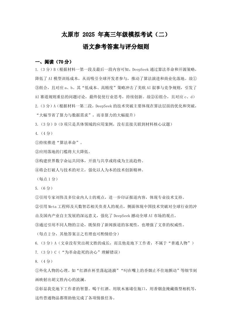 山西省太原市2025年高三年级模拟考试(二)语文答案.pdf