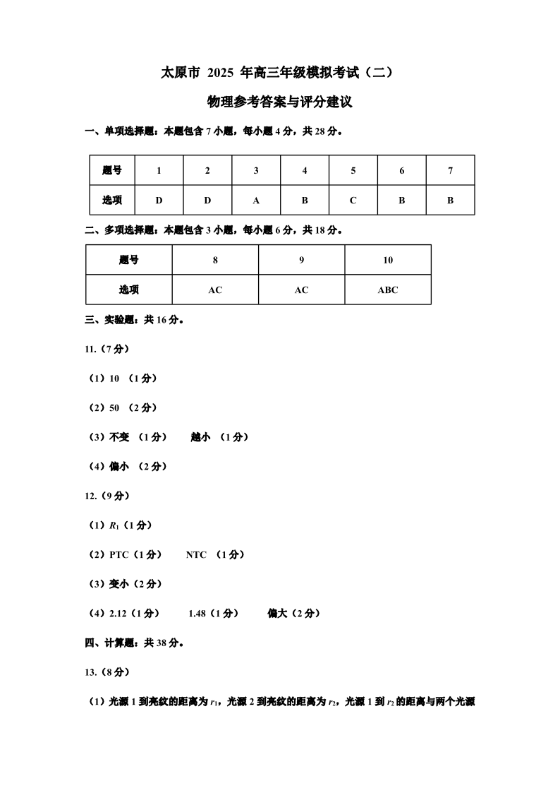 山西省太原市2025年高三年级模拟考试(二)物理答案.pdf
