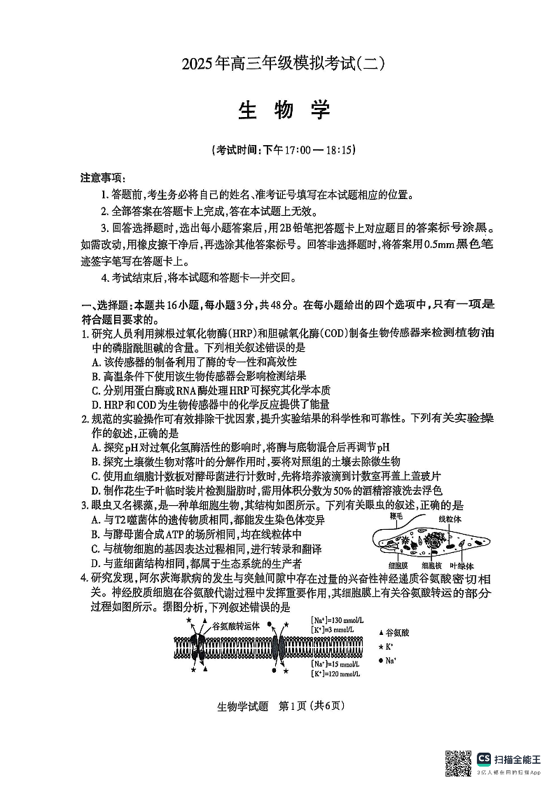 山西省太原市2025年高三年级模拟考试(二)生物.pdf
