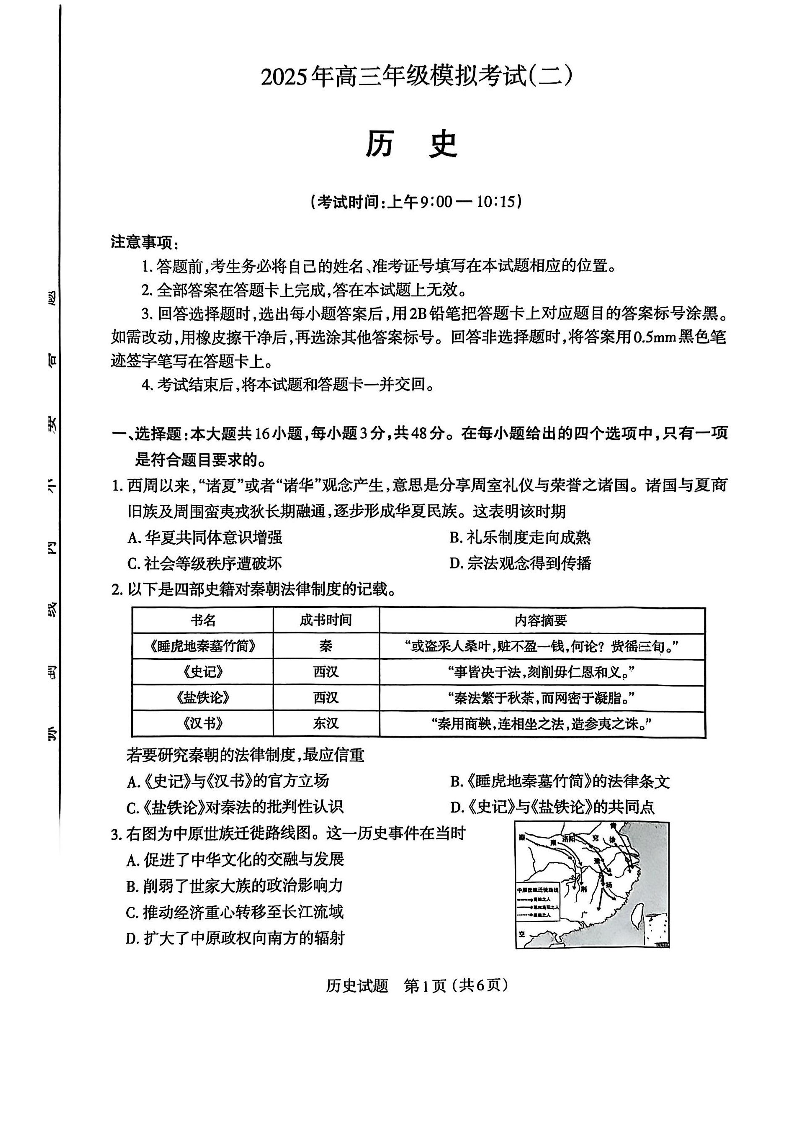 山西省太原市2025年高三年级模拟考试(二)历史.pdf