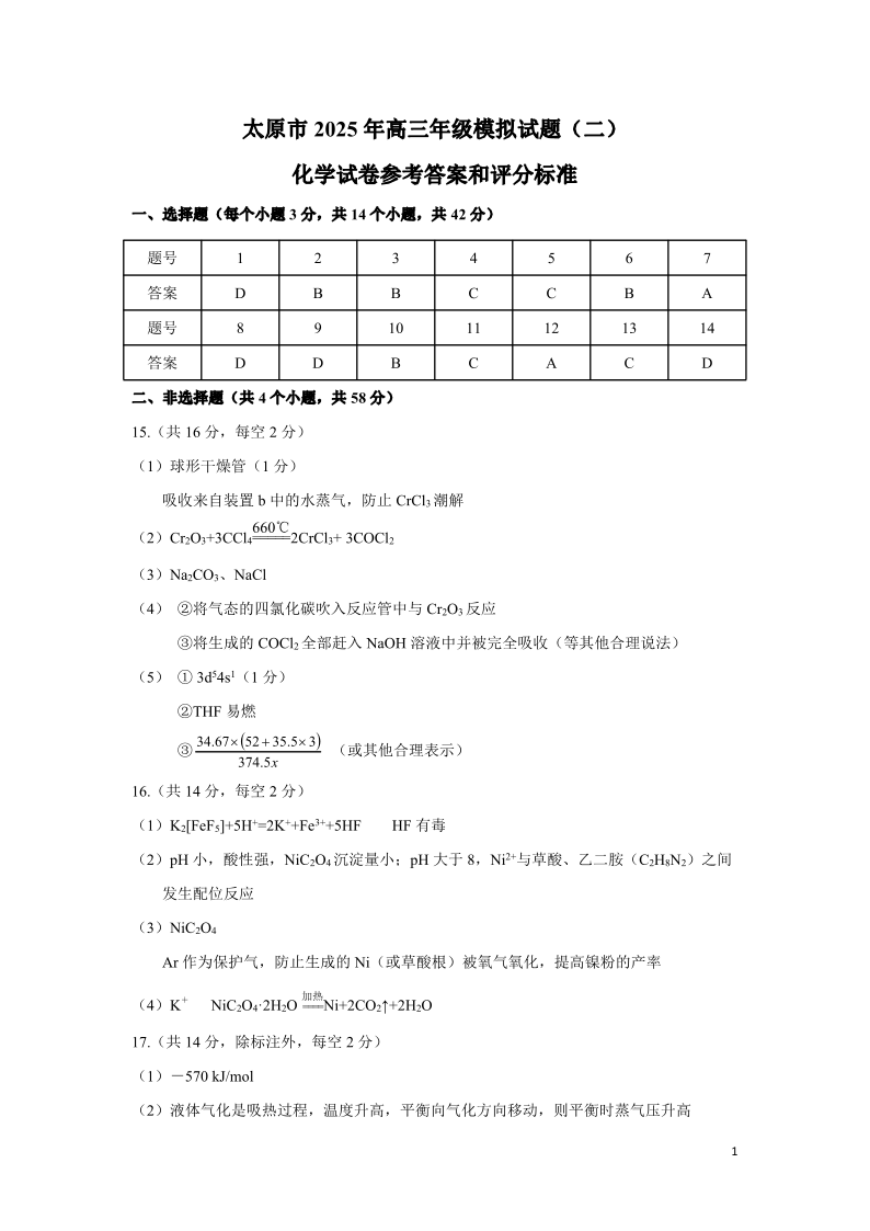 山西省太原市2025年高三年级模拟考试(二)化学答案.pdf