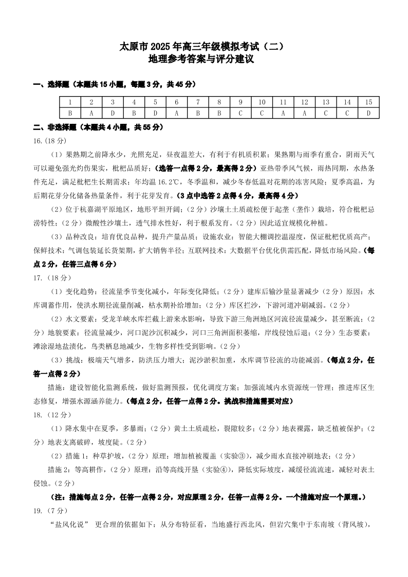 山西省太原市2025年高三年级模拟考试(二)地理答案.pdf