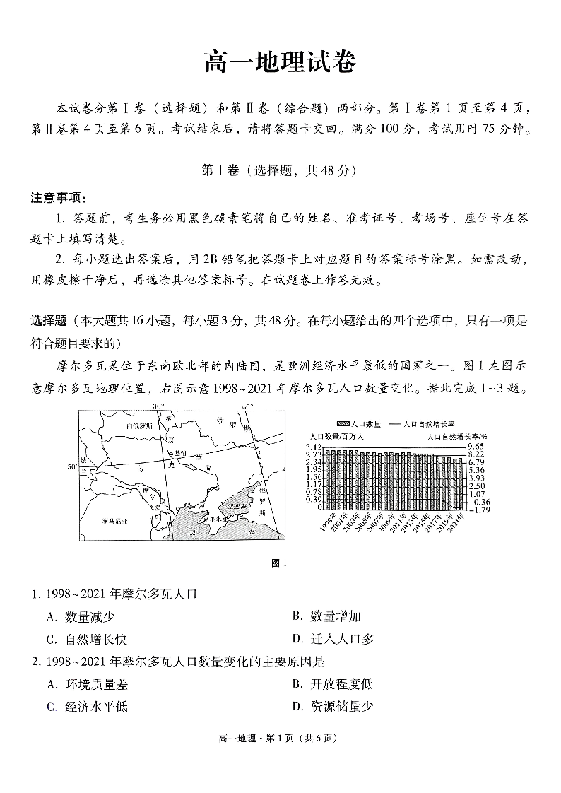 贵阳一中2024级高一年级教学质量监测卷(三)地理.pdf