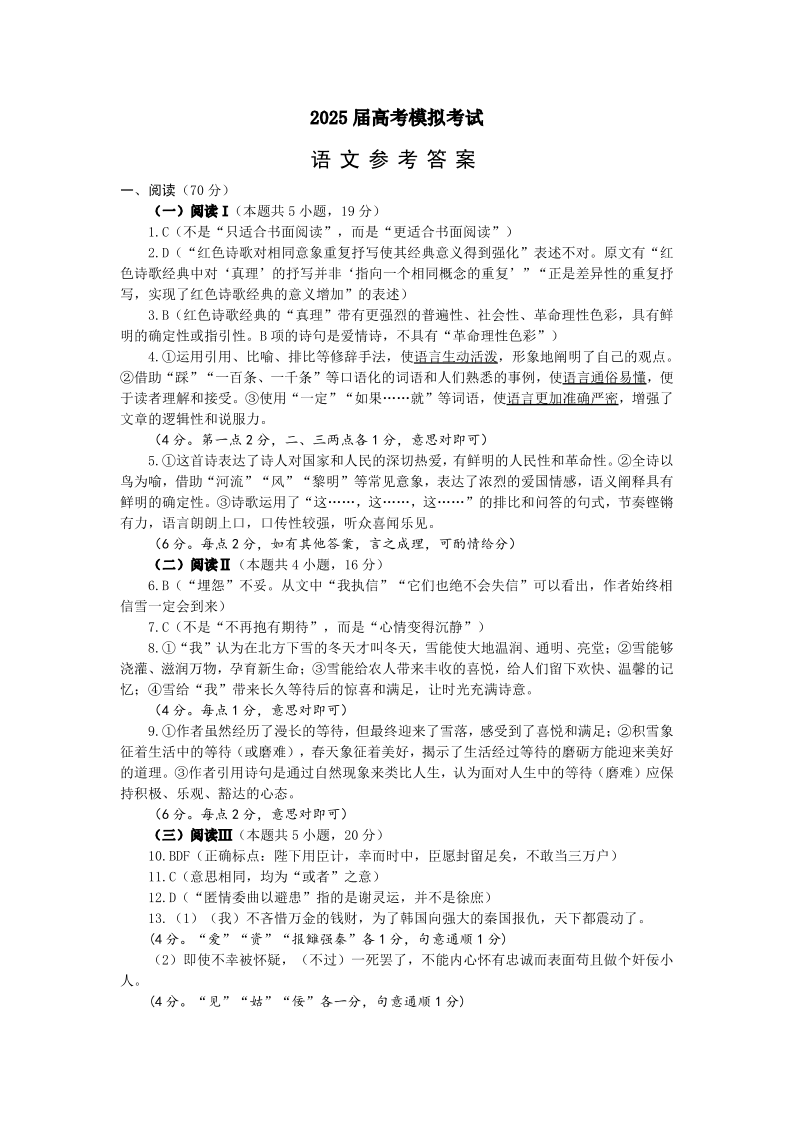 山东省(济宁市、枣庄市)高考模拟考试 语文答案.pdf