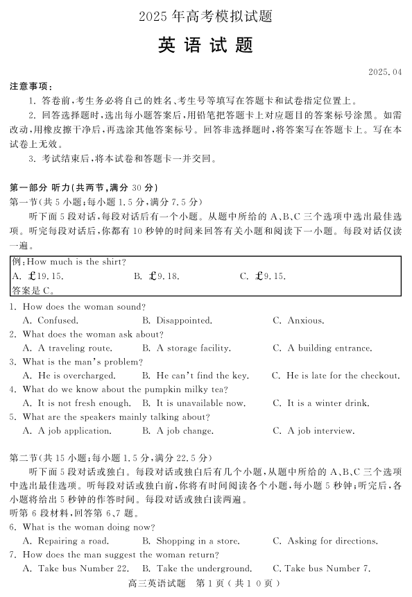 山东省(济宁市、枣庄市)高考模拟考试 英语.pdf