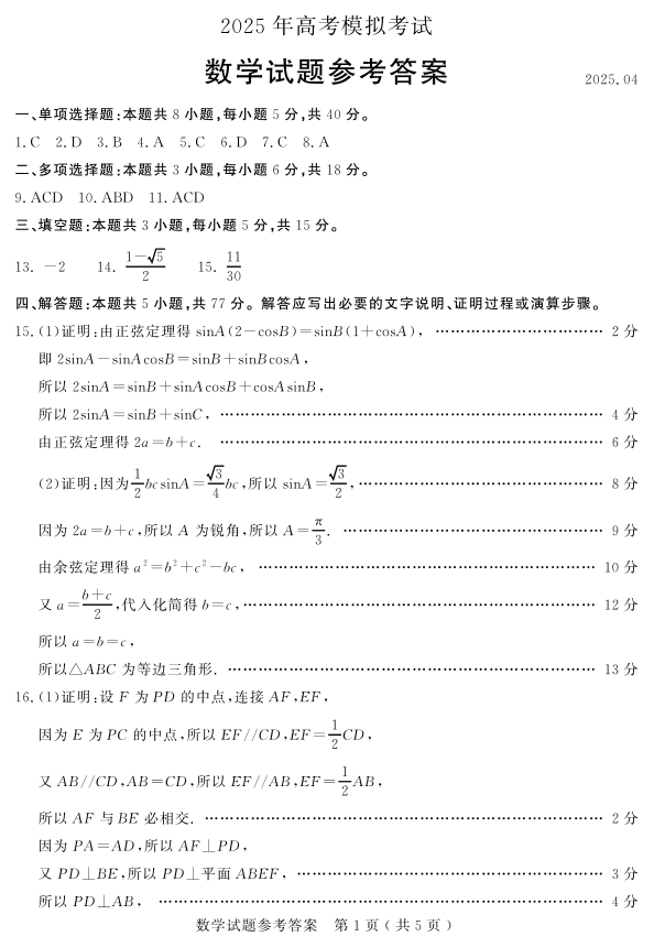 山东省(济宁市、枣庄市)高考模拟考试 数学答案.pdf