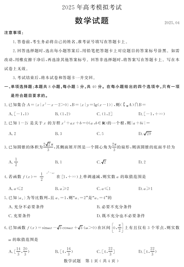 山东省(济宁市、枣庄市)高考模拟考试 数学.pdf