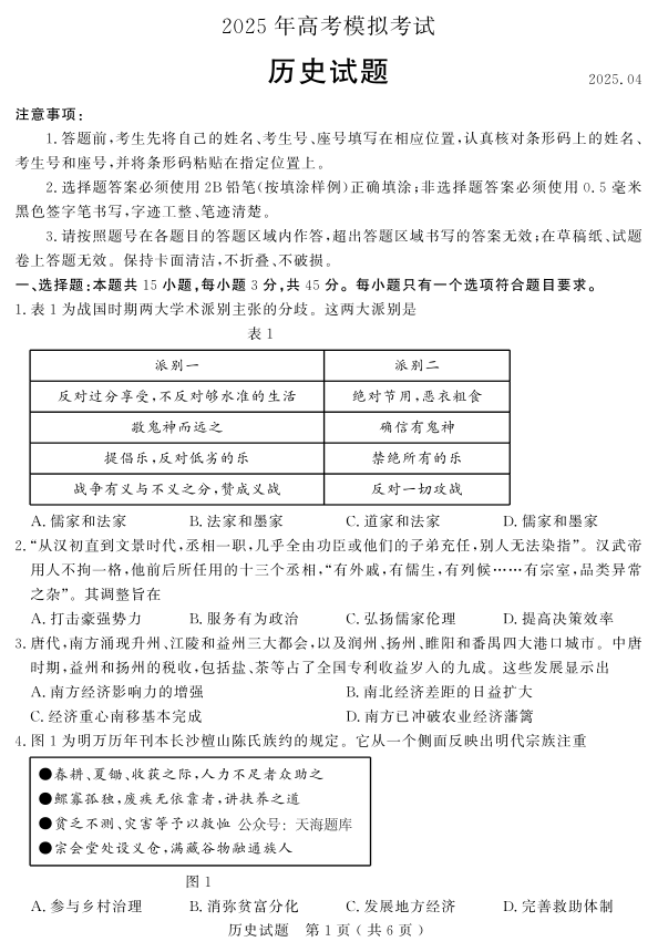 山东省(济宁市、枣庄市)高考模拟考试 历史.pdf