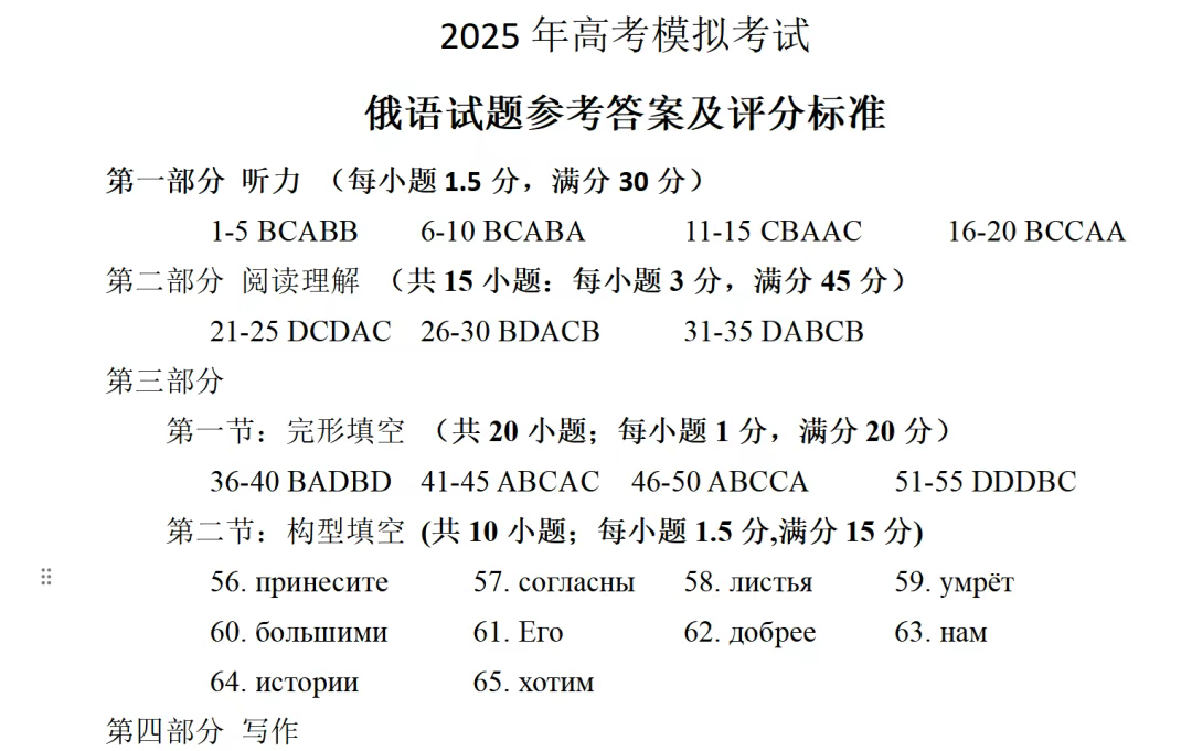 山东省(济宁市、枣庄市)高考模拟考试 俄语答案.pdf