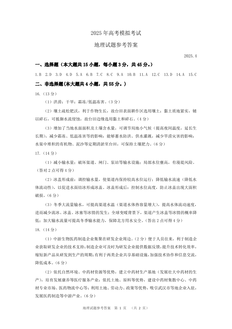 山东省(济宁市、枣庄市)高考模拟考试 地理答案.pdf