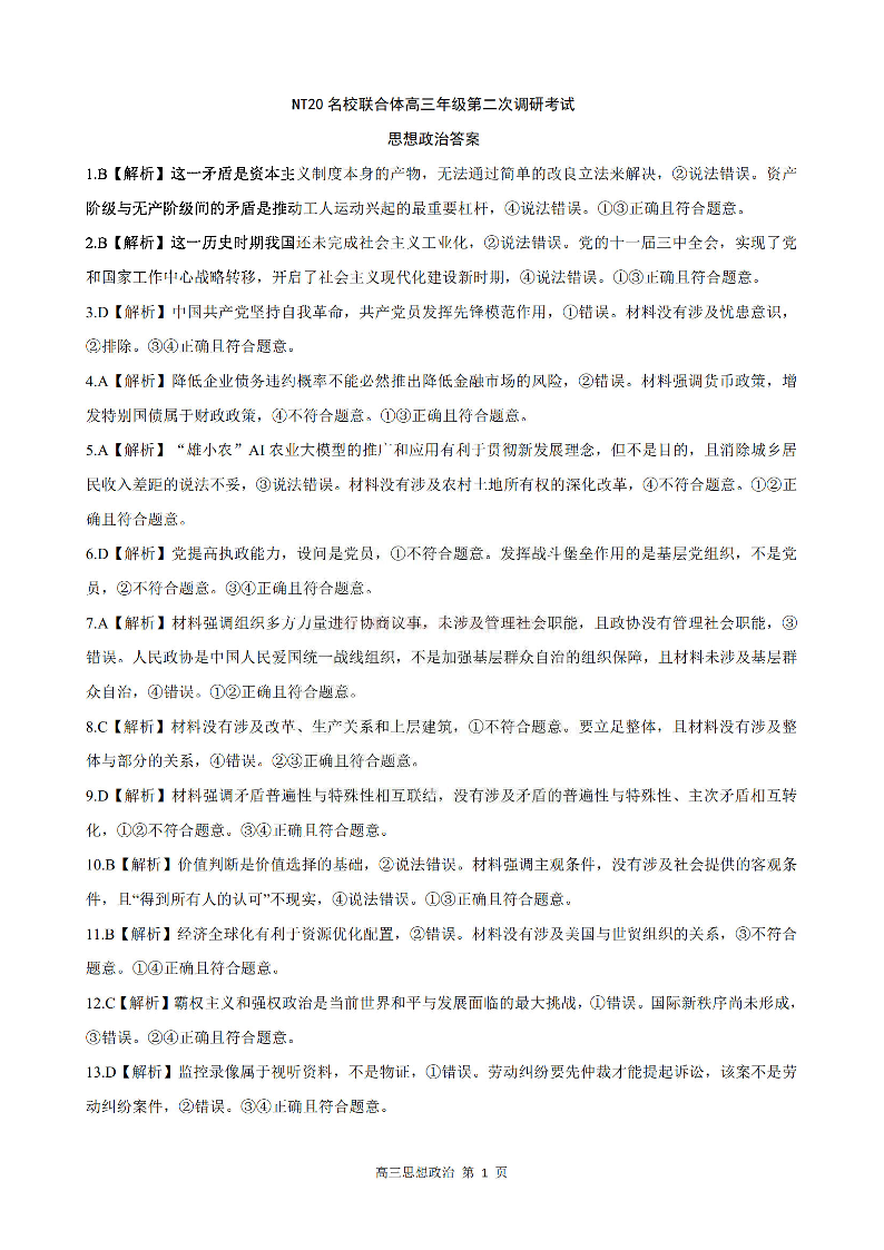 NT20名校联合体高三年级第二次调研考试 政治答案.pdf