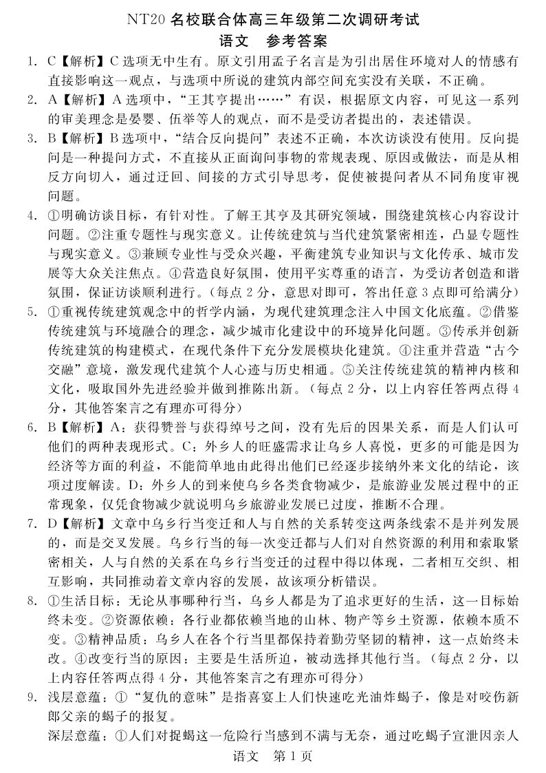 NT20名校联合体高三年级第二次调研考试 语文答案.pdf