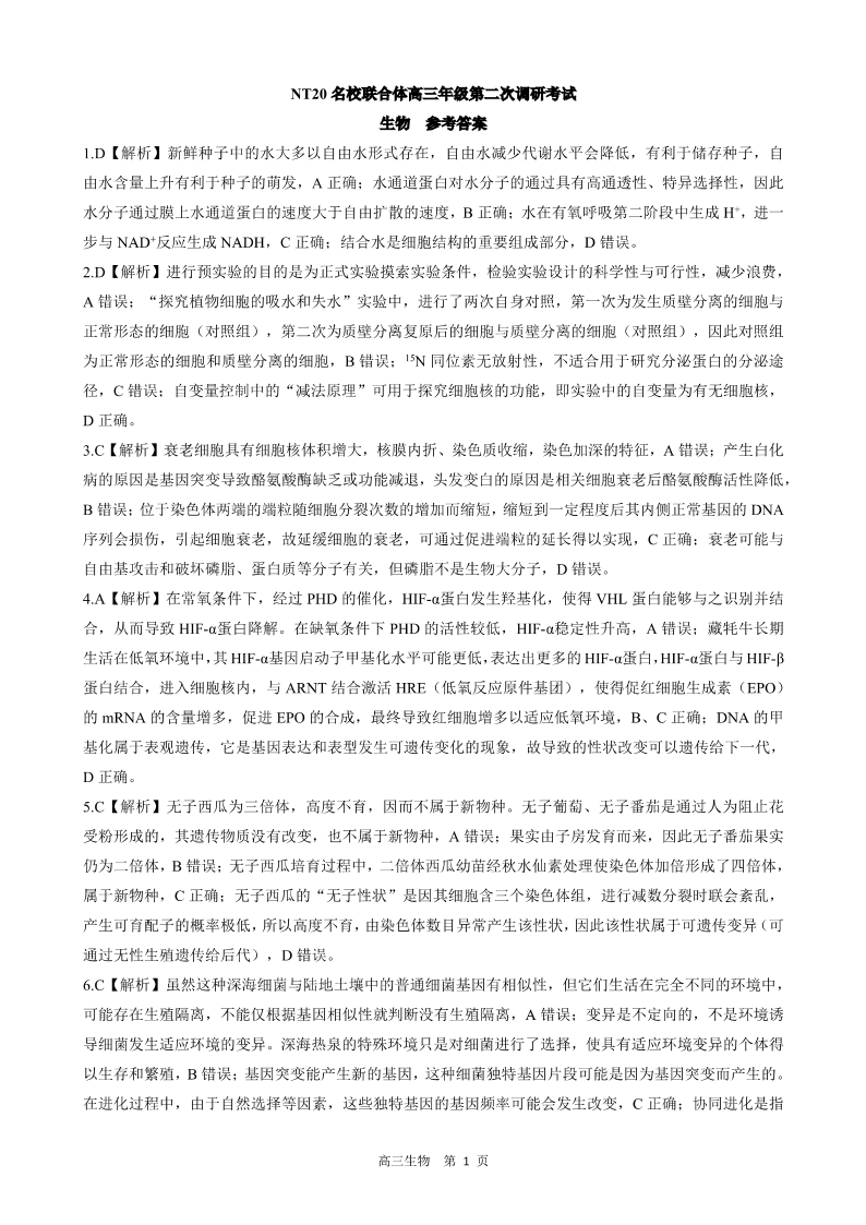 NT20名校联合体高三年级第二次调研考试 生物答案.pdf