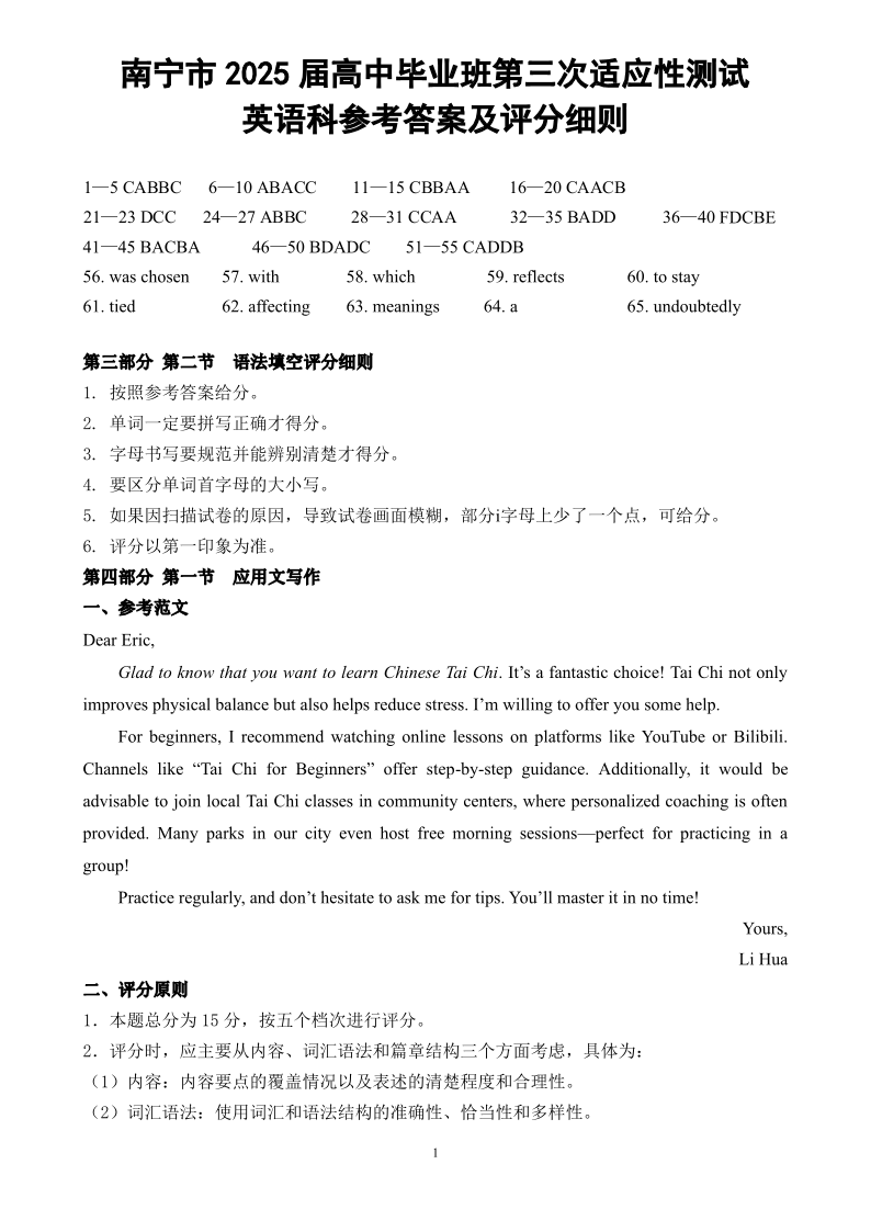 南宁市2025届普通高中毕业班第三次适应性测试 英语答案.pdf