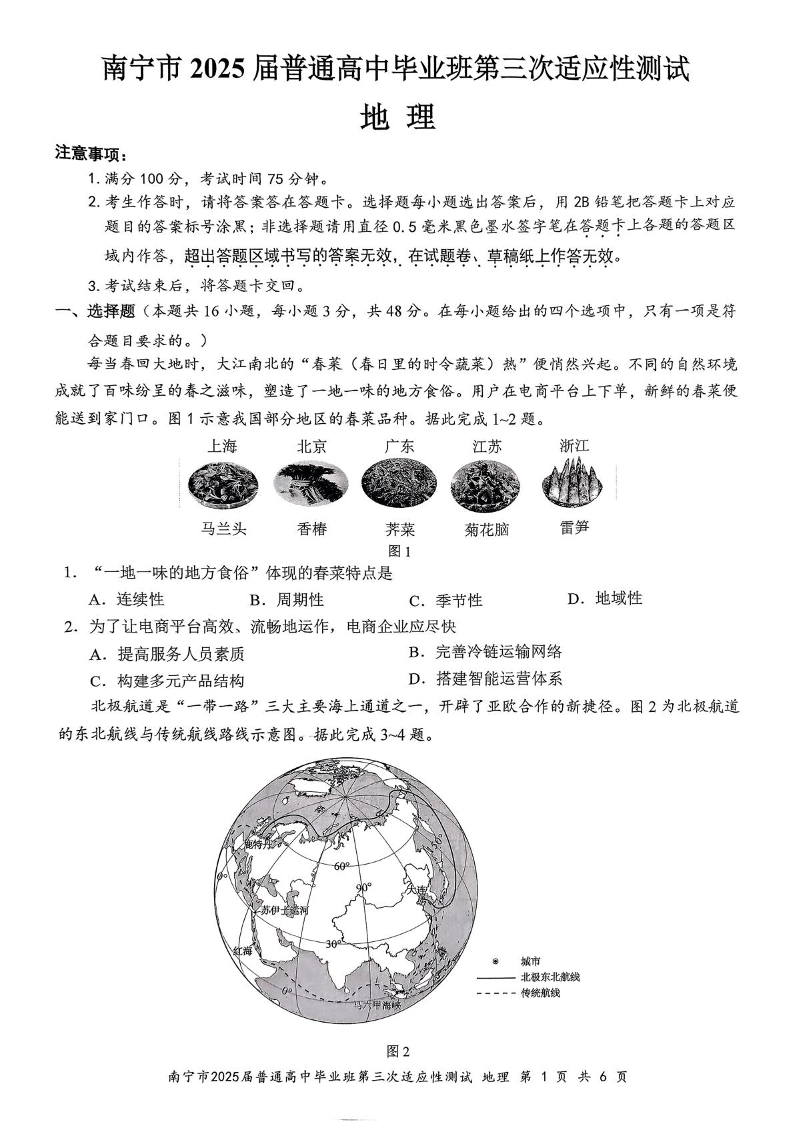 南宁市2025届普通高中毕业班第三次适应性测试 地理.pdf