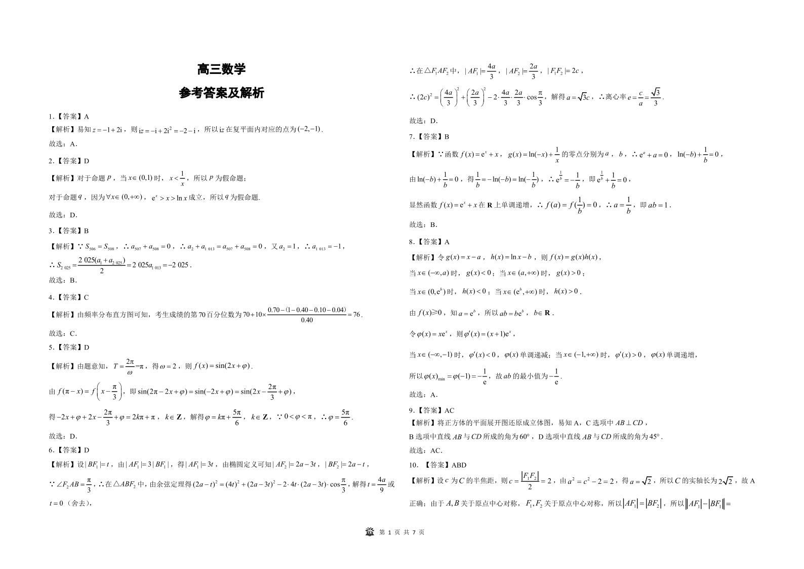 东北三省精准教学联盟2025届高三4月联考 数学答案.pdf