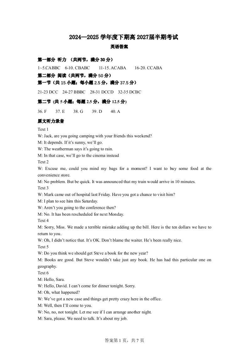 高一英语下期半期考试试卷答案.pdf