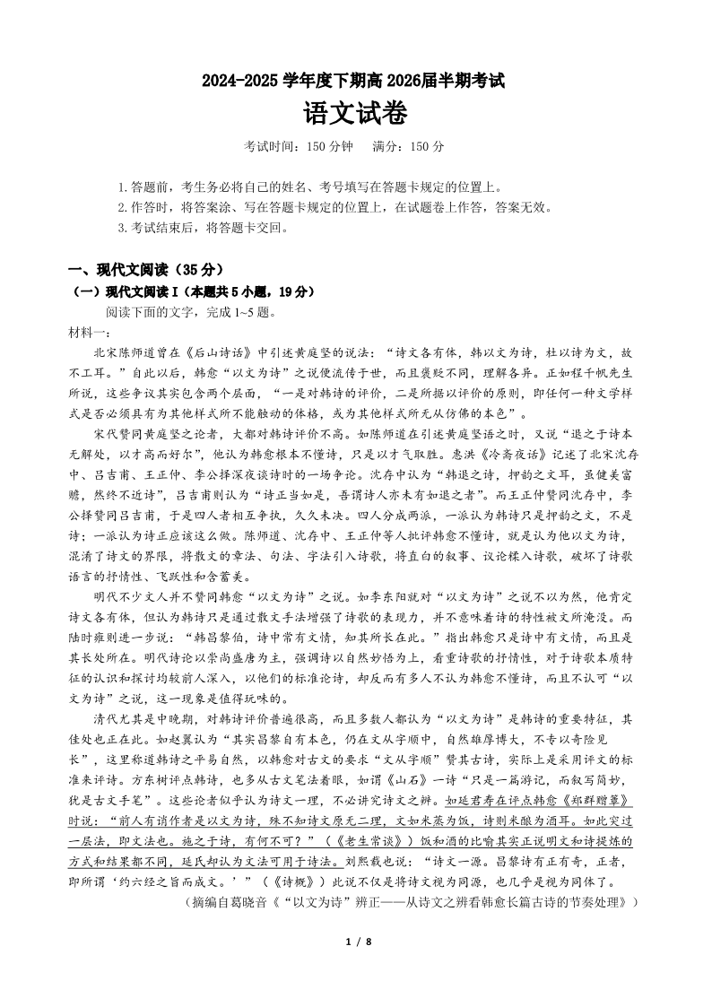 高二语文下期半期考试试卷.pdf