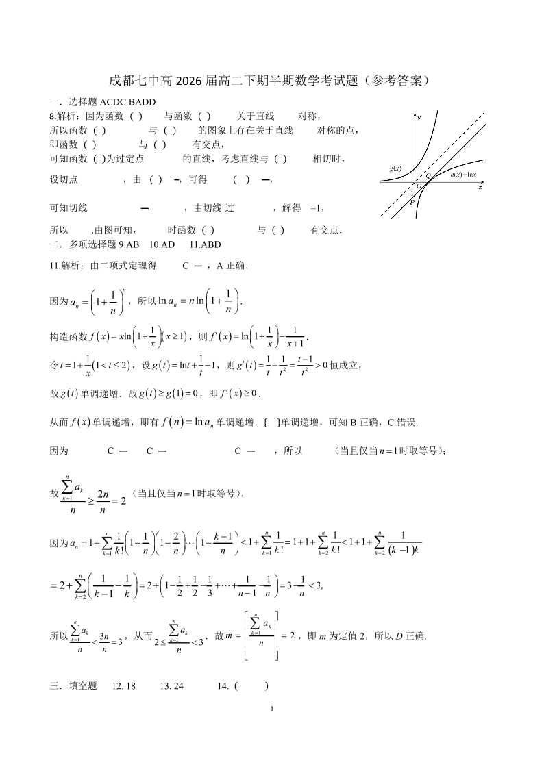 高二数学下期半期考试试卷答案.pdf