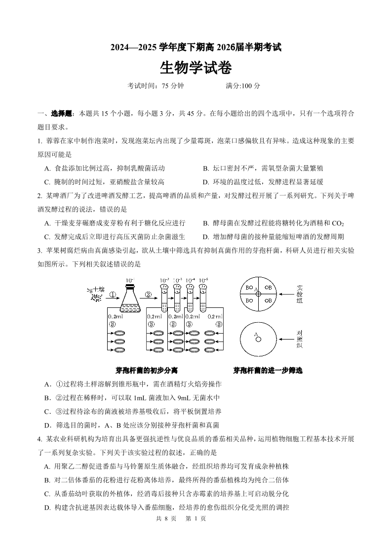 高二生物下期半期考试试卷.pdf