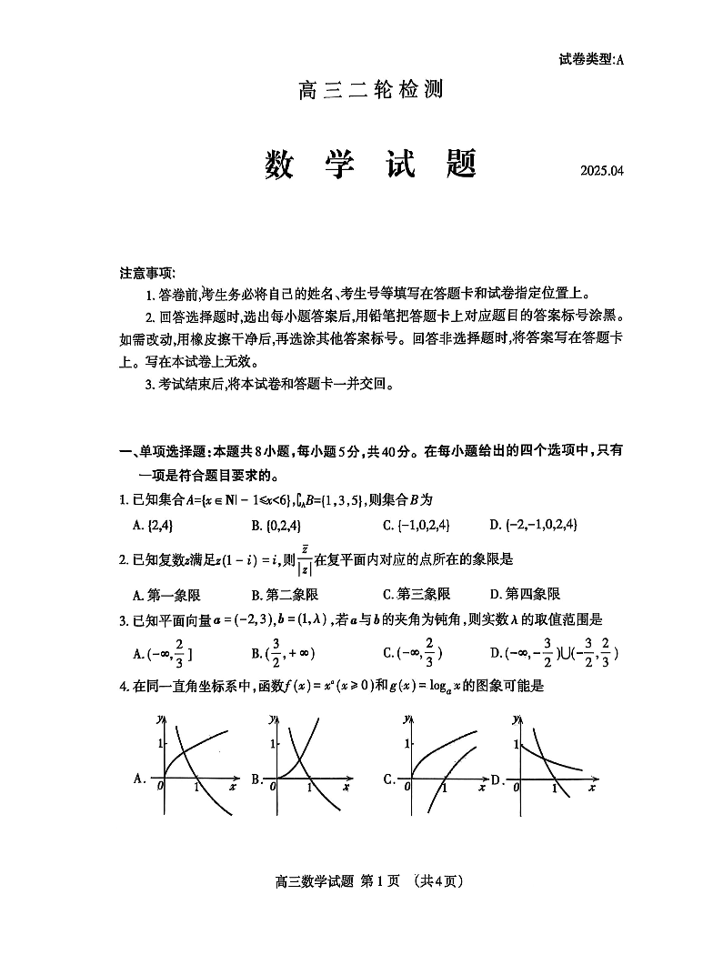 山东省泰安市2025届高三二轮检测 数学.pdf