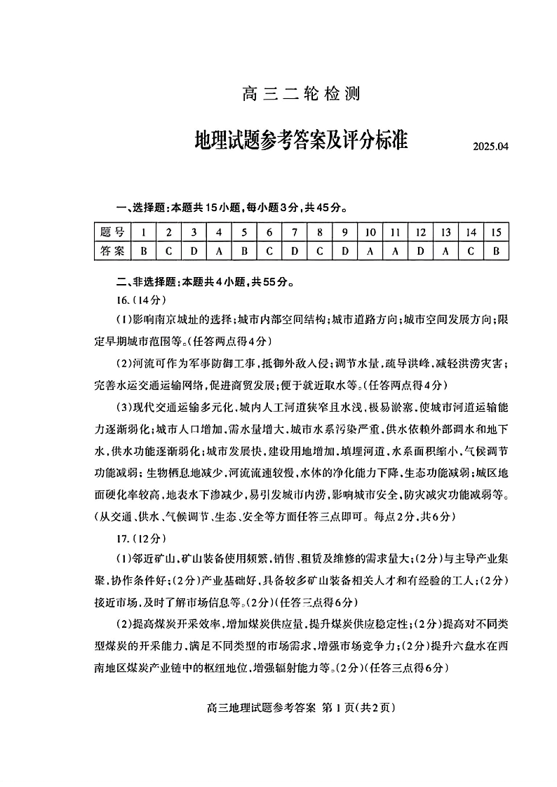 山东省泰安市2025届高三二轮检测 地理答案.pdf