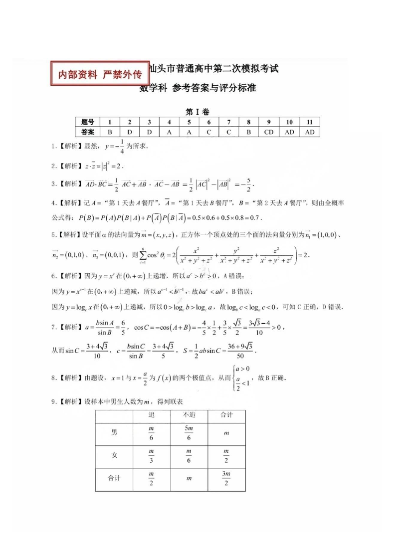 2025年汕头市普通高考第二次模拟考试 数学答案.pdf