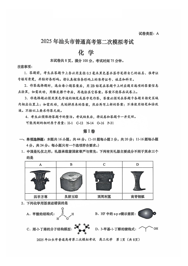 2025年汕头市普通高考第二次模拟考试 化学.pdf