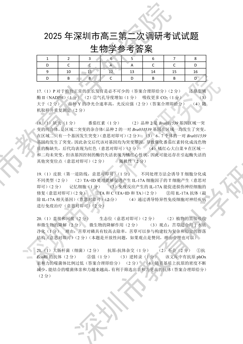 2025年深圳市高三年级第二次调研考试 生物答案.pdf