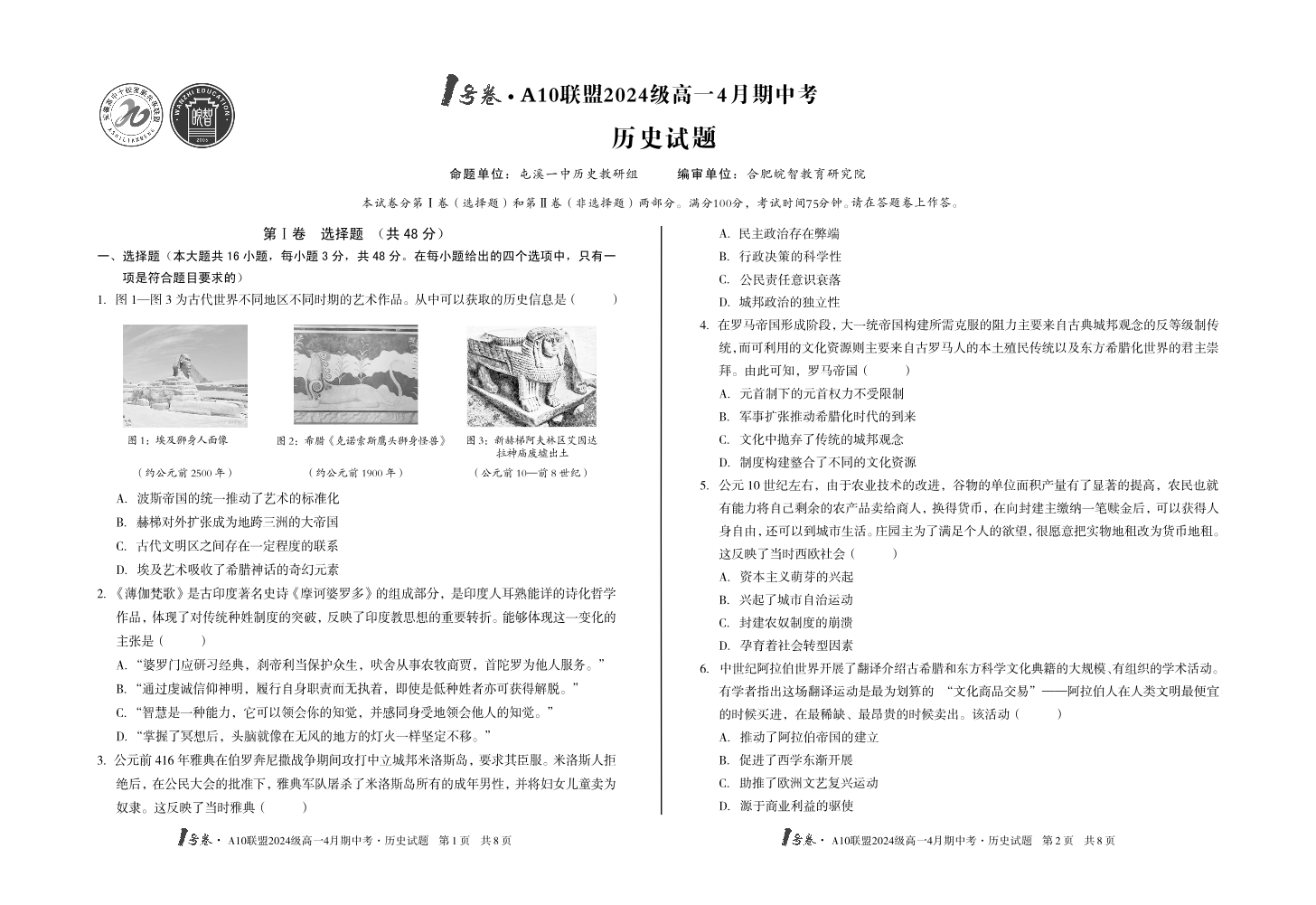 1号卷·A10联盟2024级高一4月期中考 历史.pdf