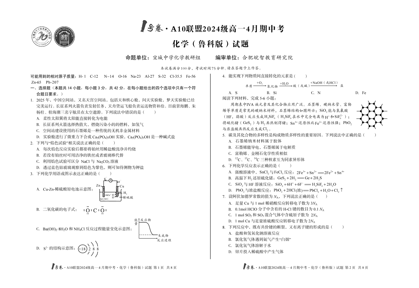 1号卷·A10联盟2024级高一4月期中考 化学(鲁科版).pdf