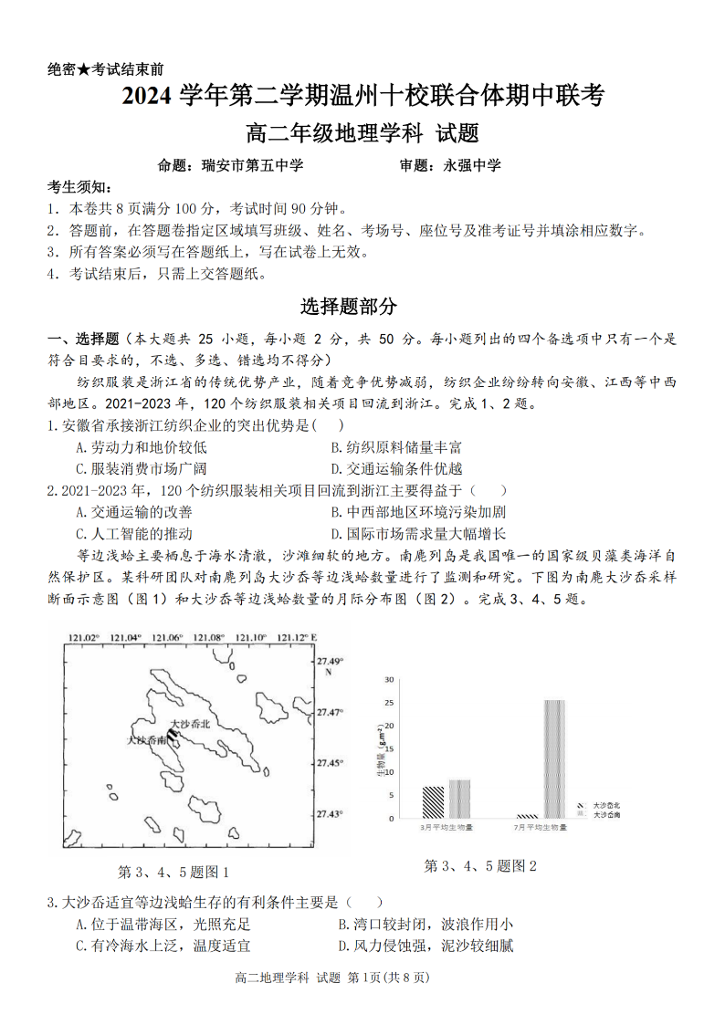 温州十校联合体2024学年高二第二学期期中联考 地理.pdf