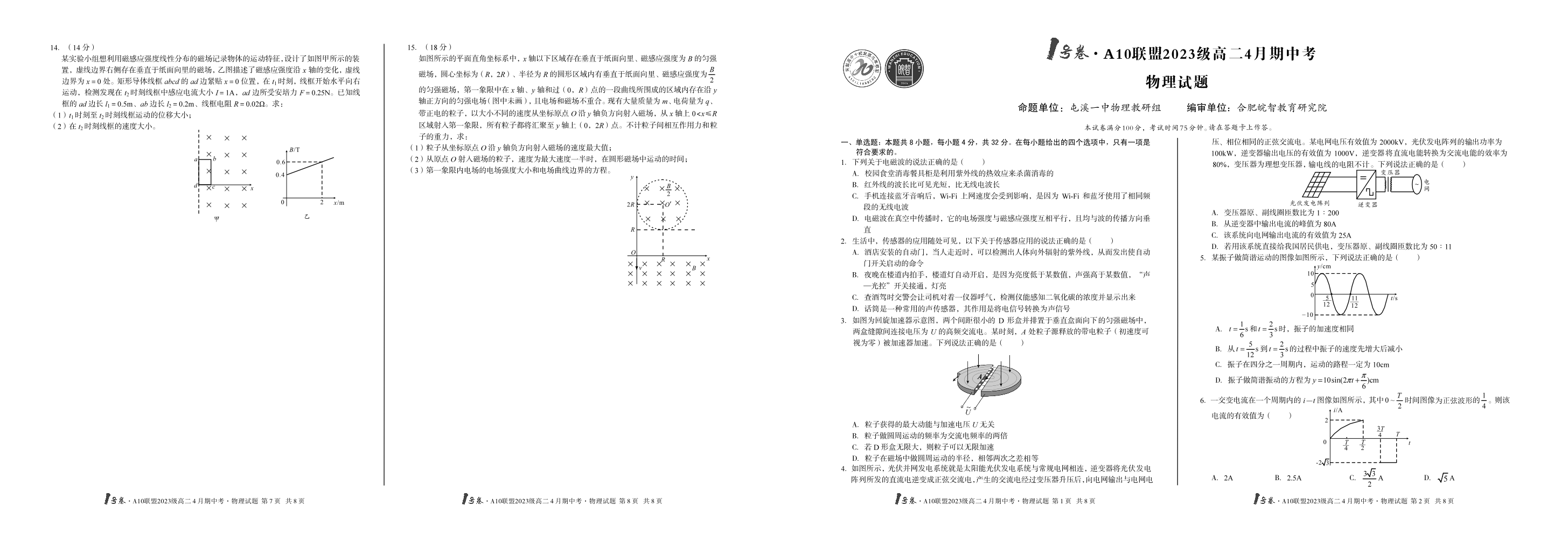 1号卷·A10联盟2023级高二4月期中考 物理.pdf