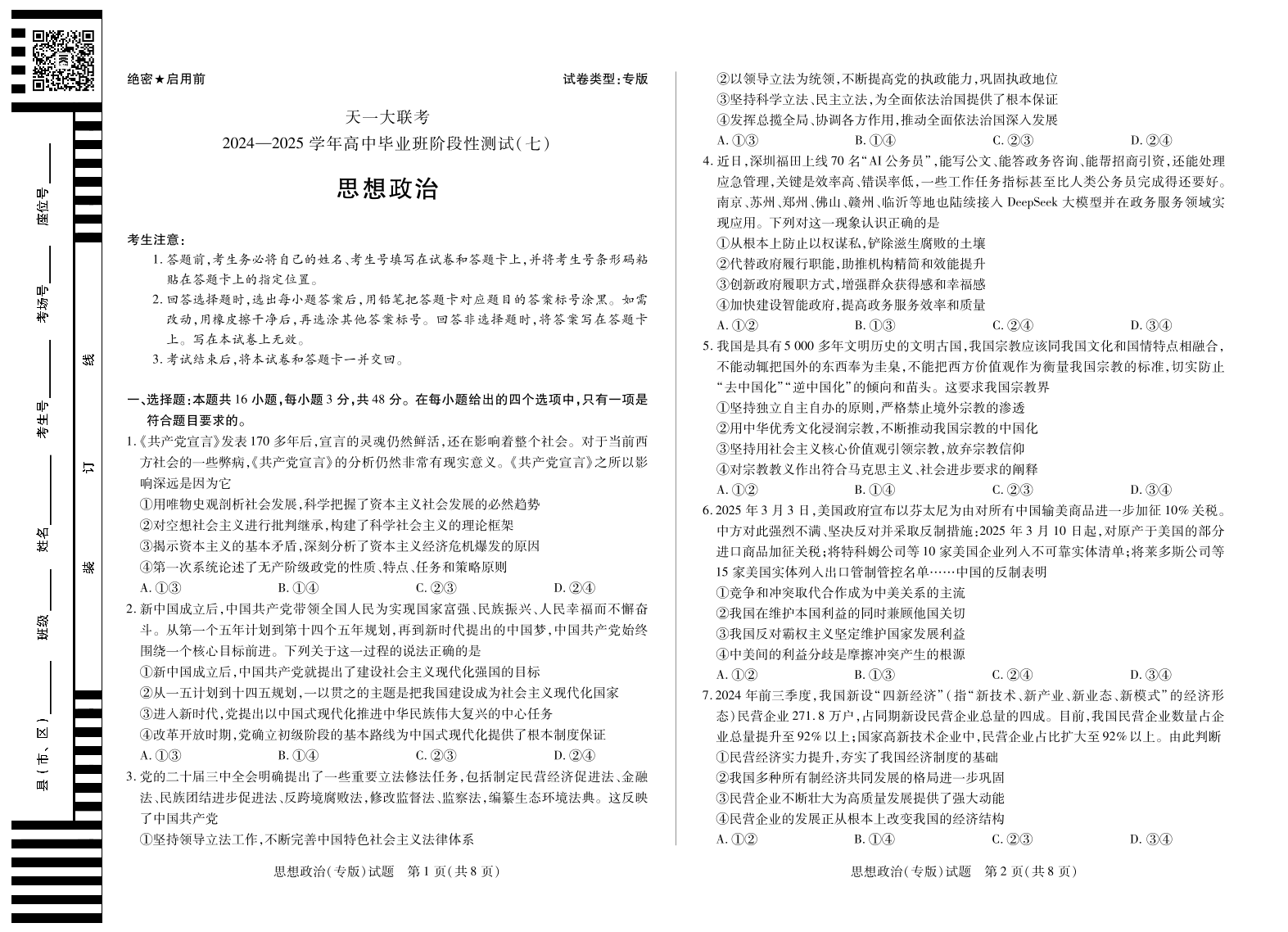陕西、山西省天一大联考2024-2025学年高中毕业班阶段性测试(七)政治.pdf