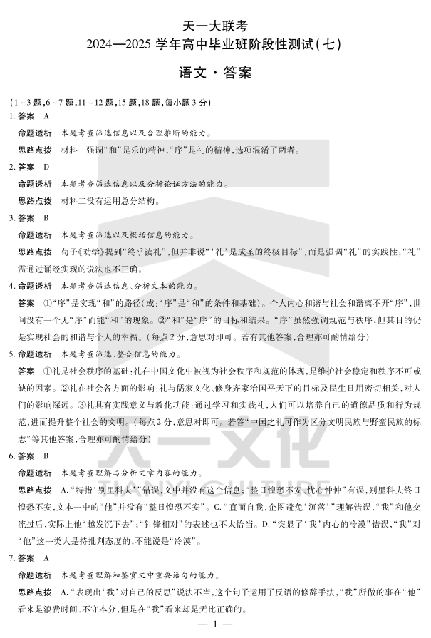 陕西、山西省天一大联考2024-2025学年高中毕业班阶段性测试(七)语文详细答案.pdf