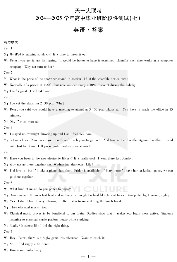 陕西、山西省天一大联考2024-2025学年高中毕业班阶段性测试(七)英语详细答案.pdf