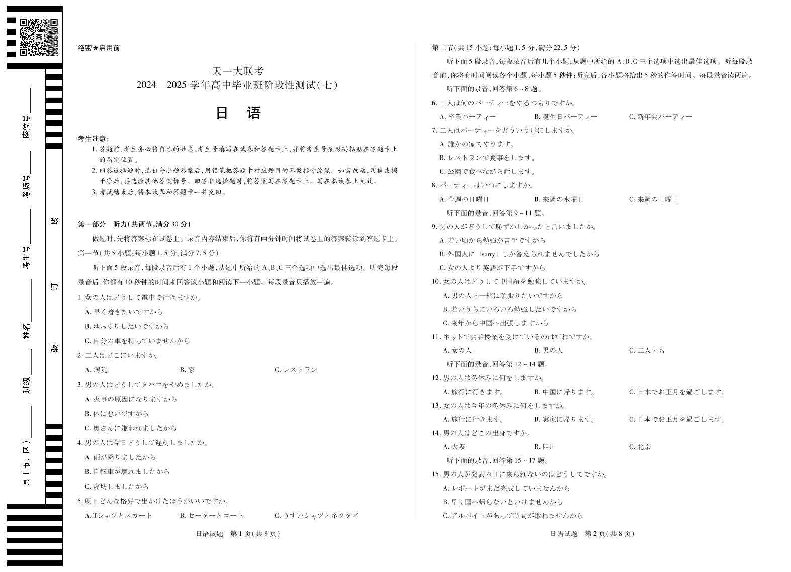 陕西、山西省天一大联考2024-2025学年高中毕业班阶段性测试(七)日语.pdf