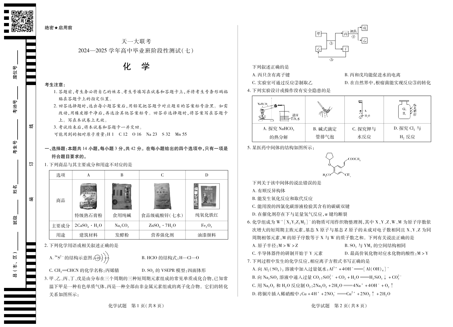 陕西、山西省天一大联考2024-2025学年高中毕业班阶段性测试(七)化学.pdf