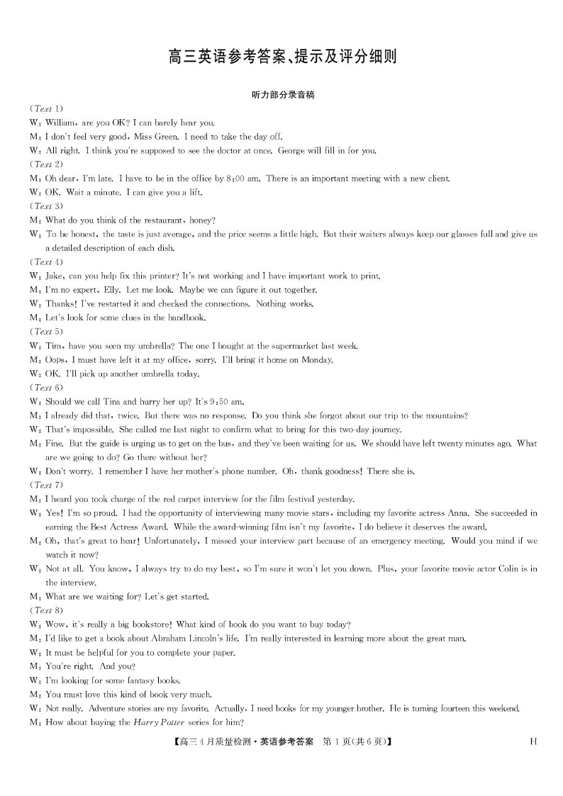 河南省九师联盟2025届高三下学期4月质量检测 英语答案.pdf